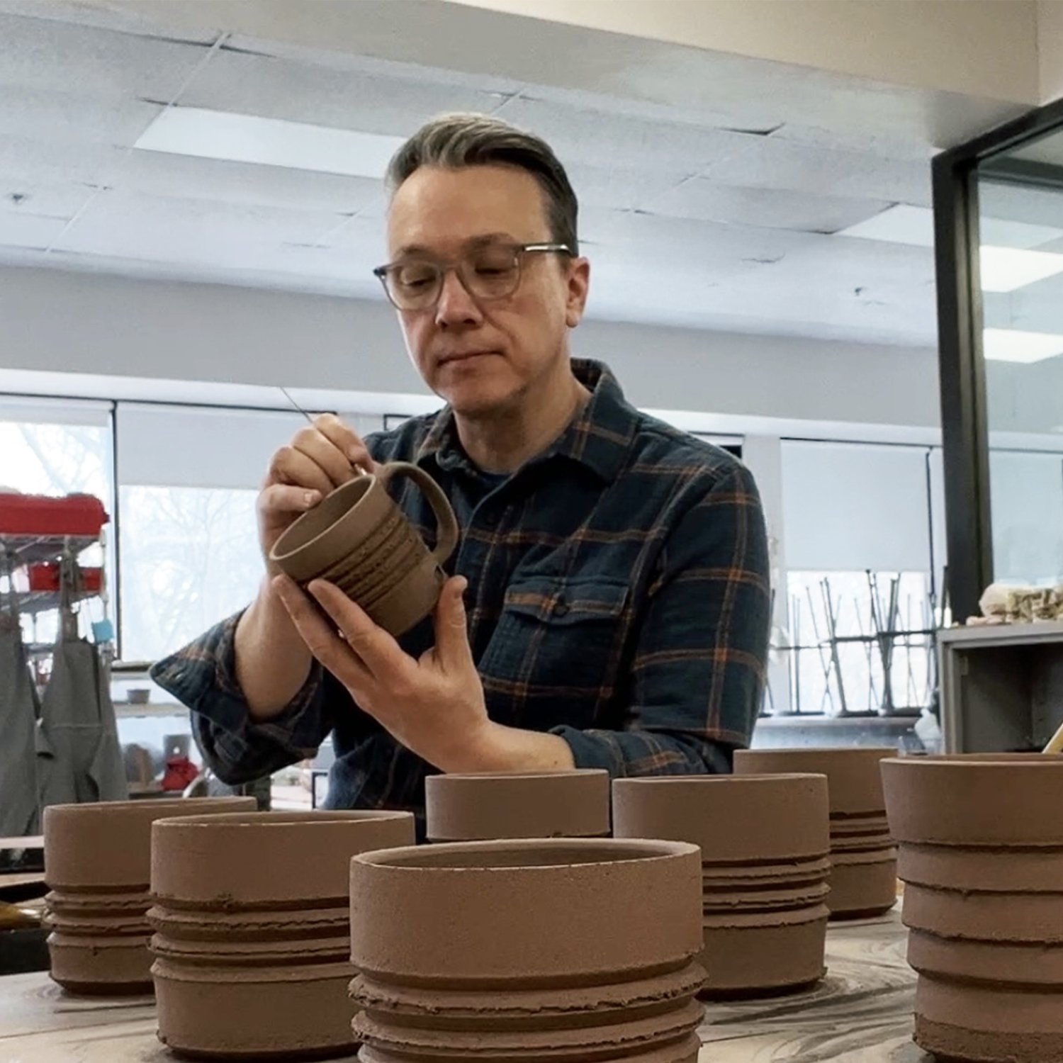 Architectural form, structural composition, and spatial balance provide a foundation for my pottery practice. These vessels are informed by the rhythms of built environments: repeated lines, modular systems, and surfaces shaped by use. Through ceramics, a medium rooted in both utility and permanence, I explore how design and craftsmanship intersect to create forms that feel deliberate and intentional.
