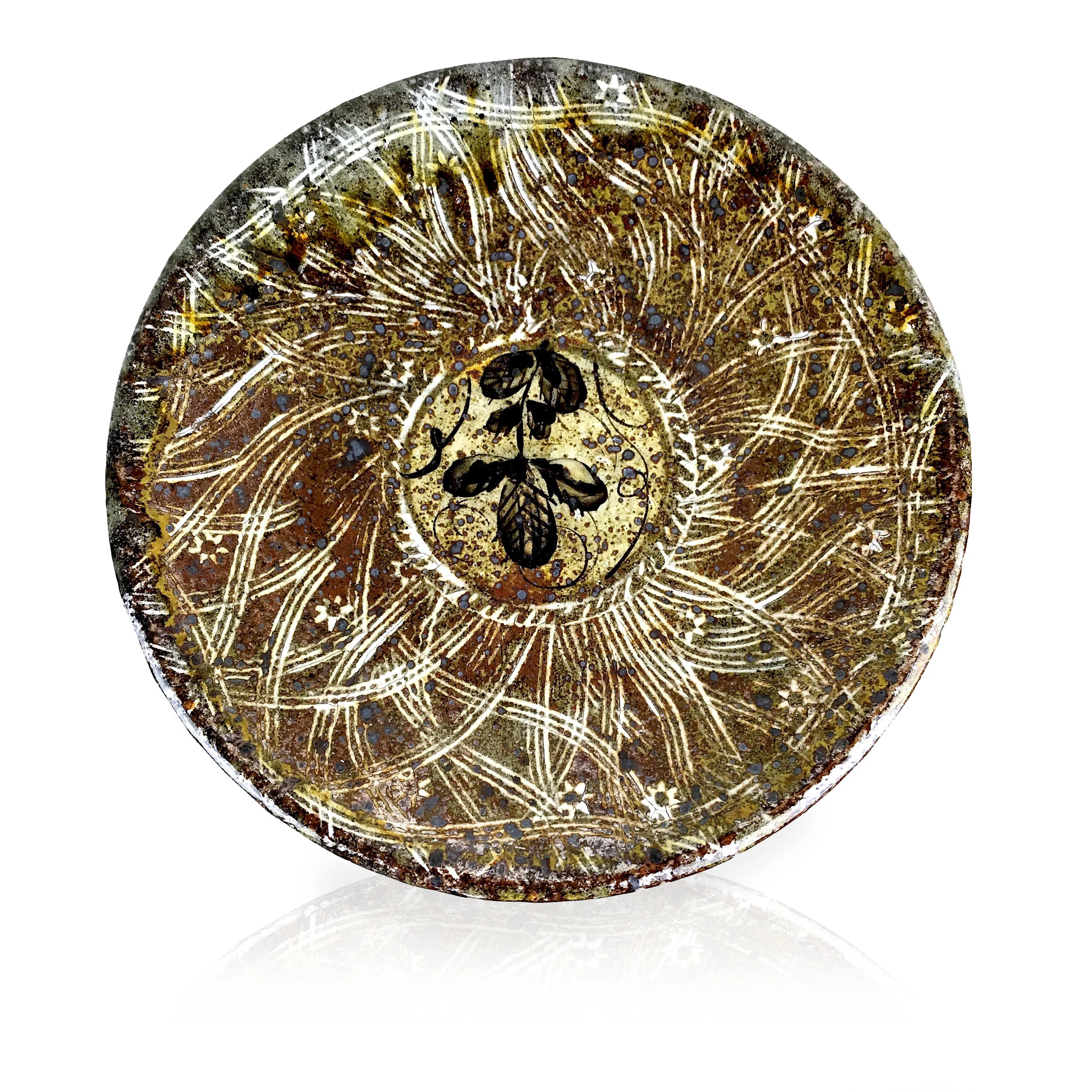 Michael Kline makes utilitarian ceramics with botanical-themed painted and stamped surfaces. For most of his career, Kline has worked with wood-fired salt-glazed stoneware, usually with organic patterns painted on a thick white slip surface, glass”runs,” and an alkaline ash glaze. As a resident at Penland (1998 - 2001), he began making large pots inspired by the traditional stoneware of Catawba Valley and Seagrove, North Carolina. He also briefly experimented with translucent porcelain in 2000, the floral patterns becoming a raised, topographical feature. In 2015 he visited the Freer-Sackler Wing of the Smithsonian and was struck by 15th C. examples of the Korean sangam technique. Since then, he has focused on applying this technique to his own work and aesthetic, creating floral stamps and inlaying the impressions with white slip on a dark stoneware base, and firing in a gas kiln.